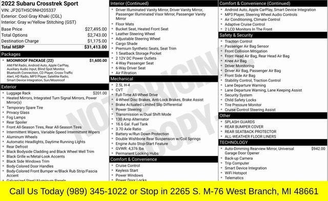Cool Gray Khaki 2022 Subaru Crosstrek Sport AWD Lineartronic CVT 2.5L 4-Cylinder DOHC 16V