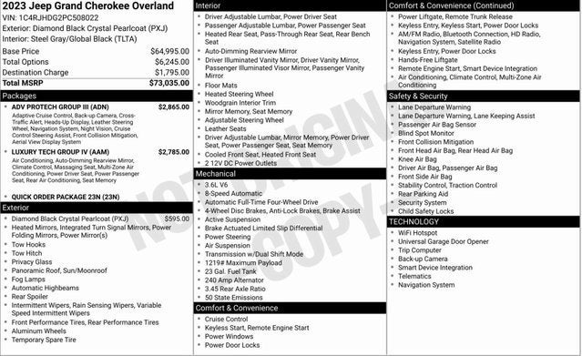 Diamond Black Crystal Pearlcoat 2023 Jeep Grand Cherokee Overland 4WD 8-Speed Automatic 3.6L V6 24V VVT