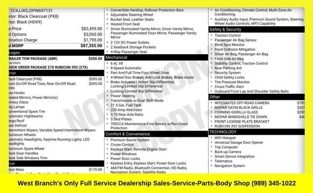 Black Clearcoat 2023 Jeep Wrangler Rubicon 392 4WD 8-Speed Automatic SRT HEMI 6.4L V8 MDS