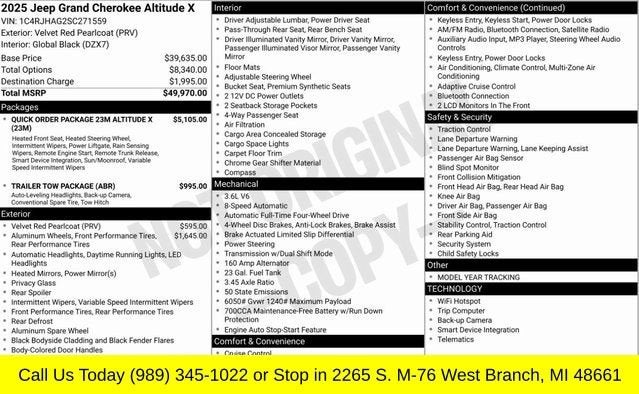 Velvet Red Pearlcoat 2025 Jeep Grand Cherokee Altitude X 4WD 8-Speed Automatic 3.6L V6 24V VVT